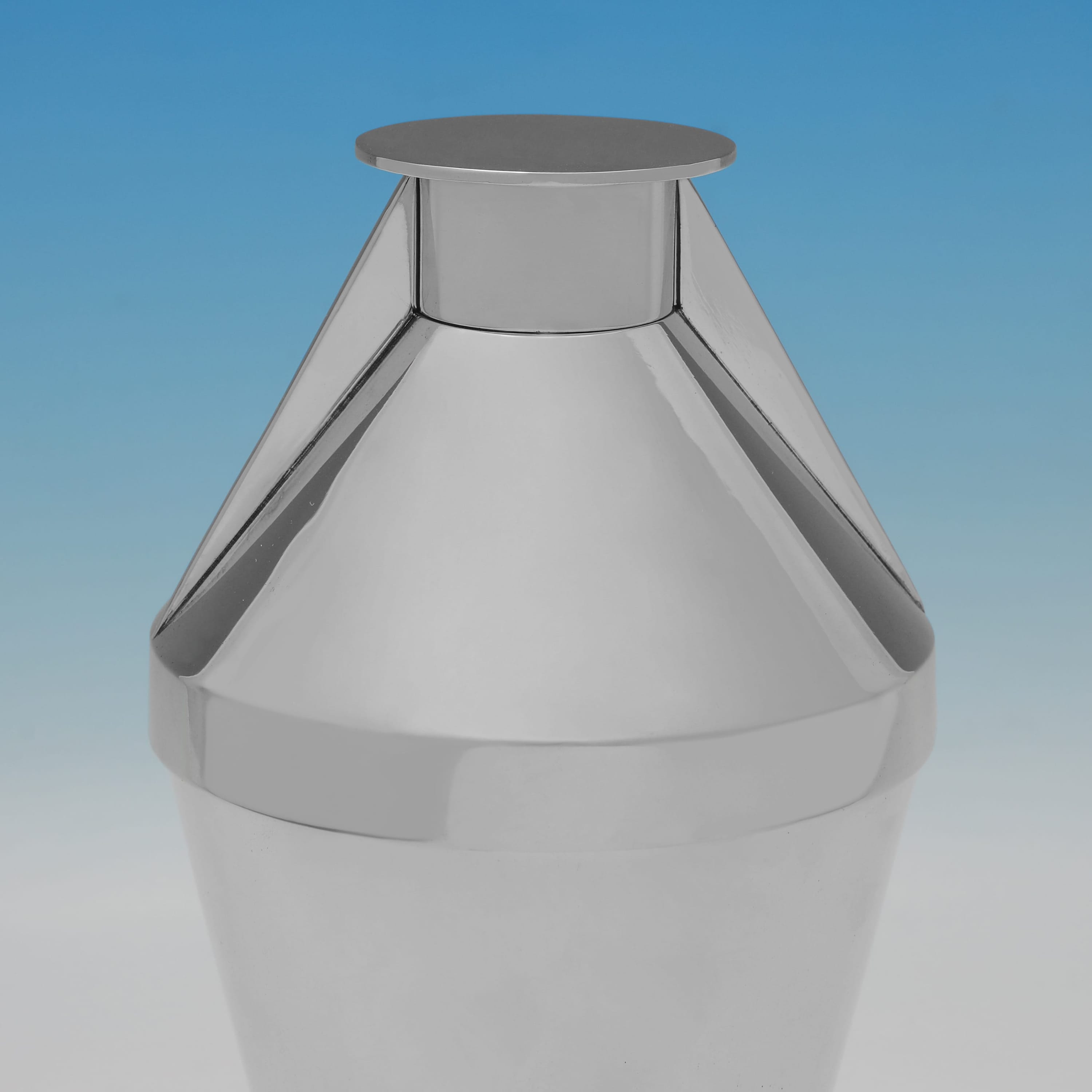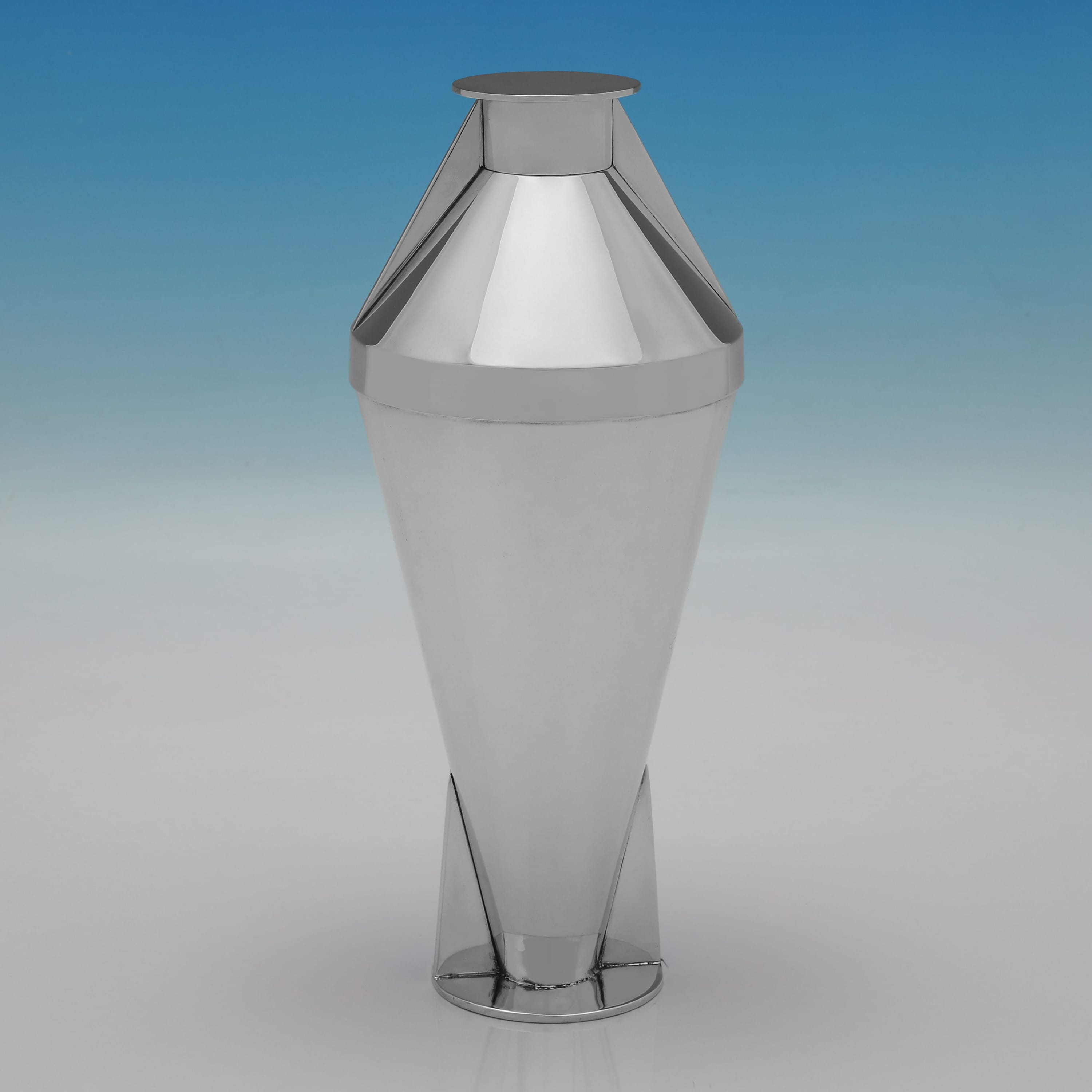 Maison Desny (1927-1933) was made up of René Mauny, the principal designer M. Desnet, staff designer Louis Poulain, and the financial backer M. Tricot. The house of Desny was recognised for its innovative and resolutely modern objects, including silverware and barware. Their aesthetic was heavily influenced by Cubism and Modernism, characterised by severe geometric forms and a preference for plain, highly polished surfaces of chromed or nickel-plated metal. Unfortunately, due to political instability in Europe and the death of M. Desnet, the firm closed in 1933